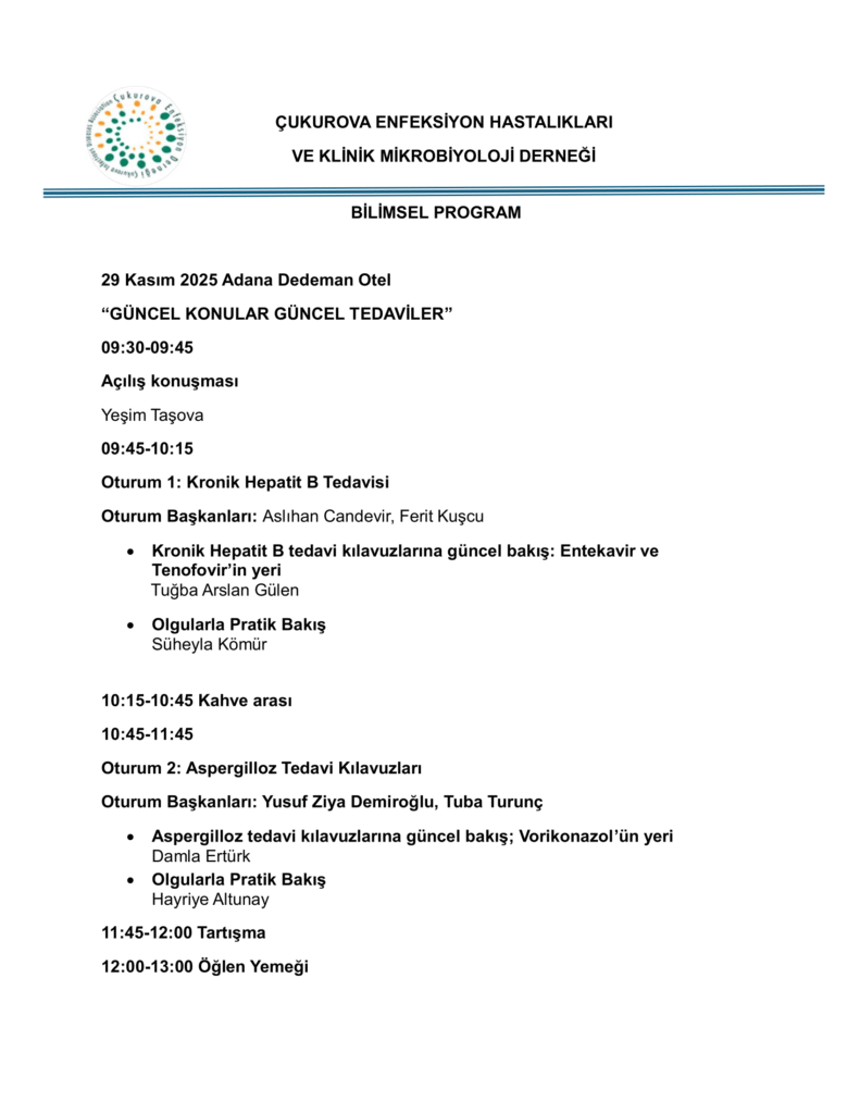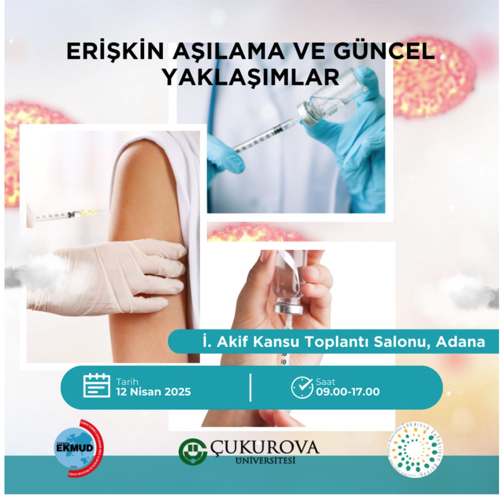 Çukurova Üniversitesi, Türkiye Enfeksiyon Hastalıkları ve Klinik Mikrobiyoloji Uzmanlık Derneği (EKMUD) ve Çukurova Enfeksiyon Derneği iş birliğiyle düzenlenen “Erişkin Aşılama ve Güncel Yaklaşımlar” toplantısına sizleri davet etmekten büyük mutluluk duyuyoruz.